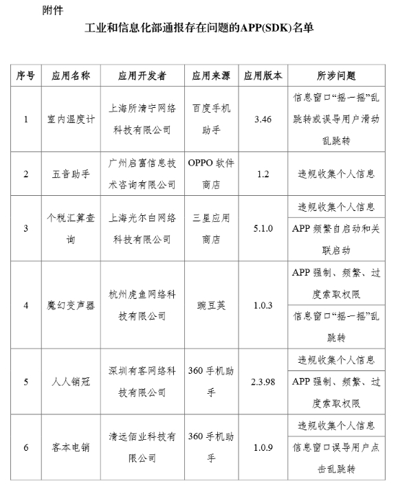 附:工业和信息化部通报存在问题的APP(SDK)名单