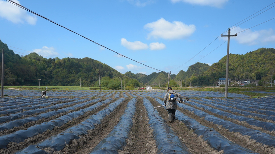 春和景明,草木吐翠。走进贵州省岑巩县客楼镇安山村烤烟种植基地,放眼望去,烟垄上一排排白色地膜纵横交错,村民们三五一组穿梭其间,正动作娴熟地打孔、栽苗、浇水,勾画出一幅生动的春耕画卷。