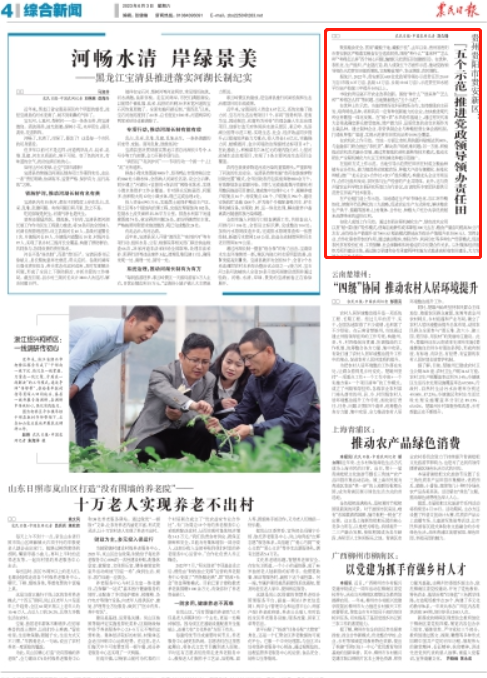 聚焦粮食安全,贯彻“藏粮于地、藏粮于技”,去年以来,贵州省贵阳市贵安新区严格落实粮食安全党政同责,围绕“种什么”“谁来种”“怎么种”“种得怎么样”四个核心问题,编制《示范责任田创建指引》。在优种、农机化、生产组织、产业链打造、收入成效五个方面作示范,推动党政领导领办示范责任田提质增效,实现粮食增产、农业增效、农民增收。