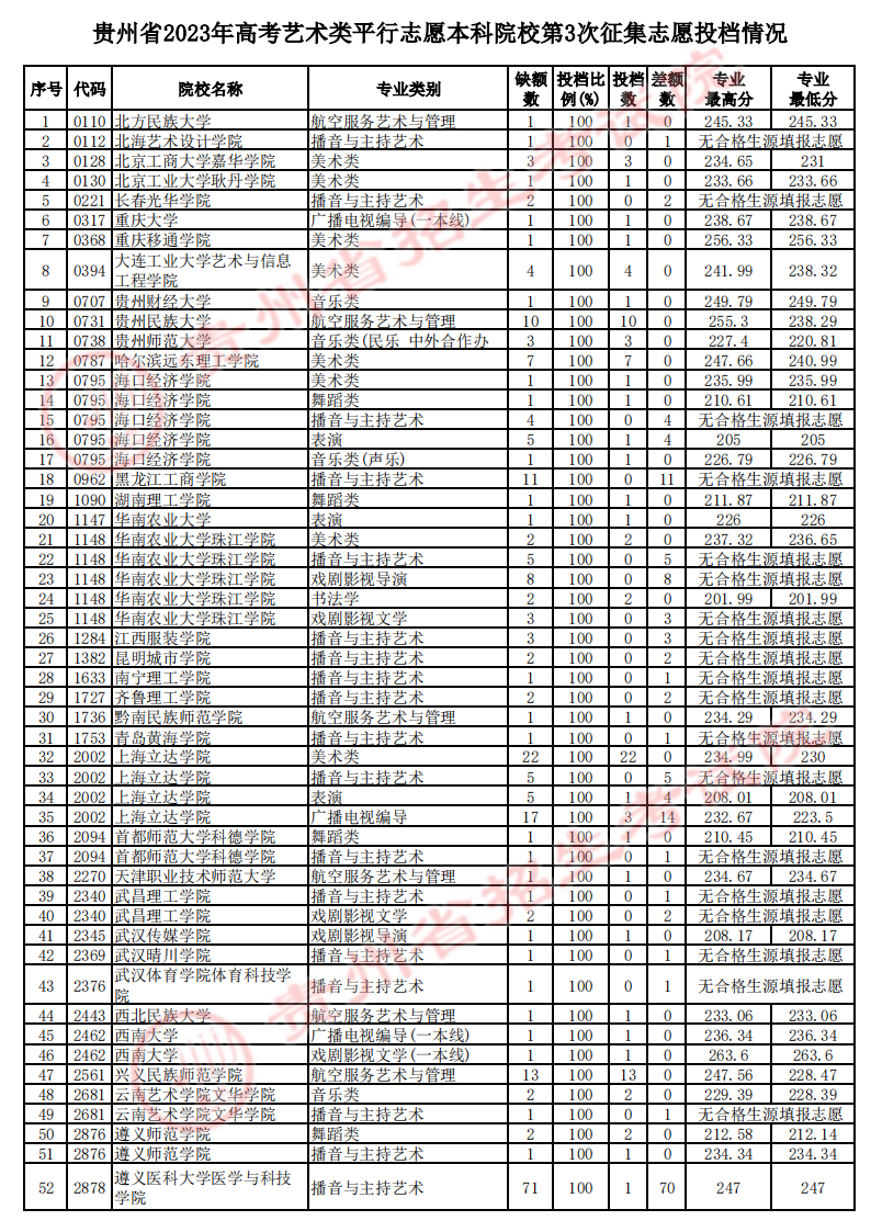 贵州省2023年高考第一批本科院校第2次征集志愿平行档情况