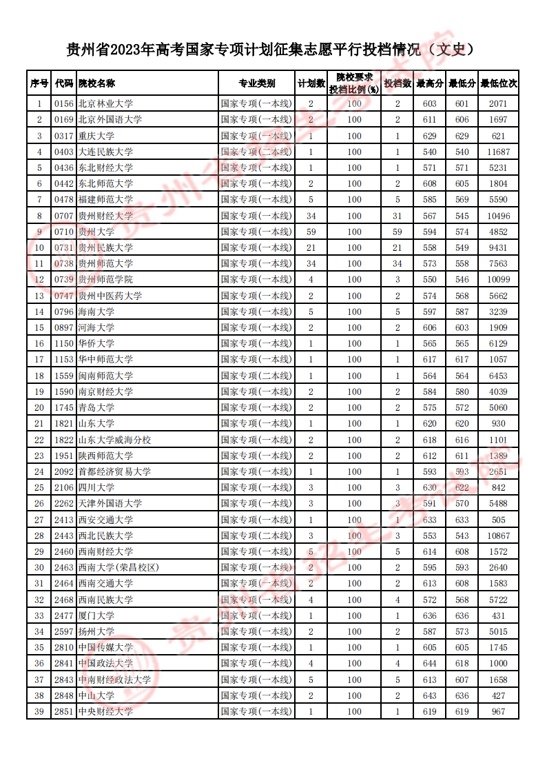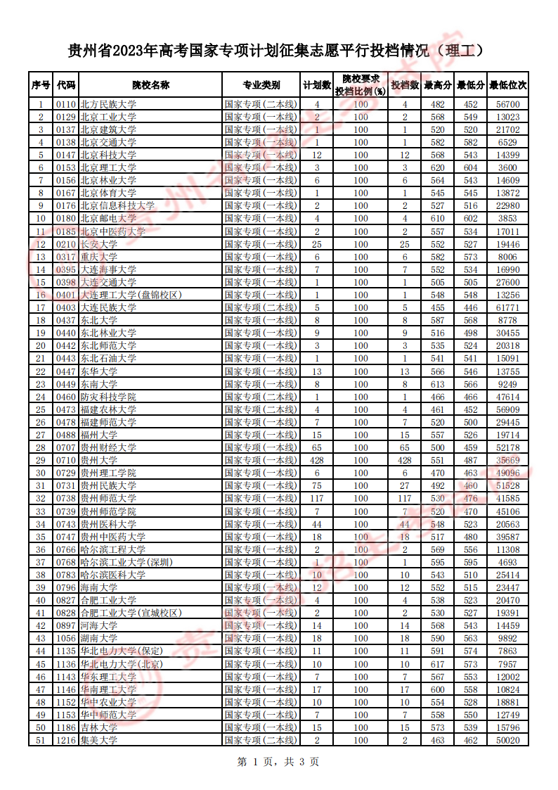 贵州省2023年高考体育类二本平行志愿征集志愿7月16日投档情况