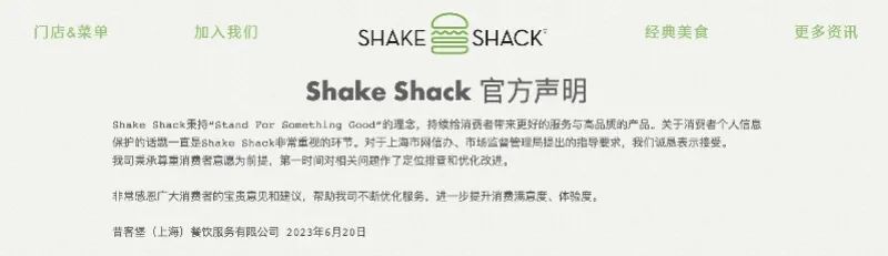 据上海市网信办披露,Shake Shack因存在频繁诱导索取用户手机号、诱导消费者提供精准位置信息、频繁弹窗诱导注册会员、诱导消费者关注公众号等过度收集个人信息行为,被上海市网信办、市市场监管局约谈。6月20日,Shake Shack通过官方渠道发表整改声明,表示已第一时间对相关问题作了定位排查和优化改进。