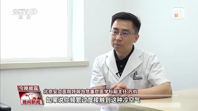 北京安贞医院呼吸与危重症医学科副主任 万钧:比如说对于慢阻肺的病人、哮喘的病人,如果说频繁过度接触到冷空气,完全可以导致哮喘的急性发作、慢阻肺的急性加重。