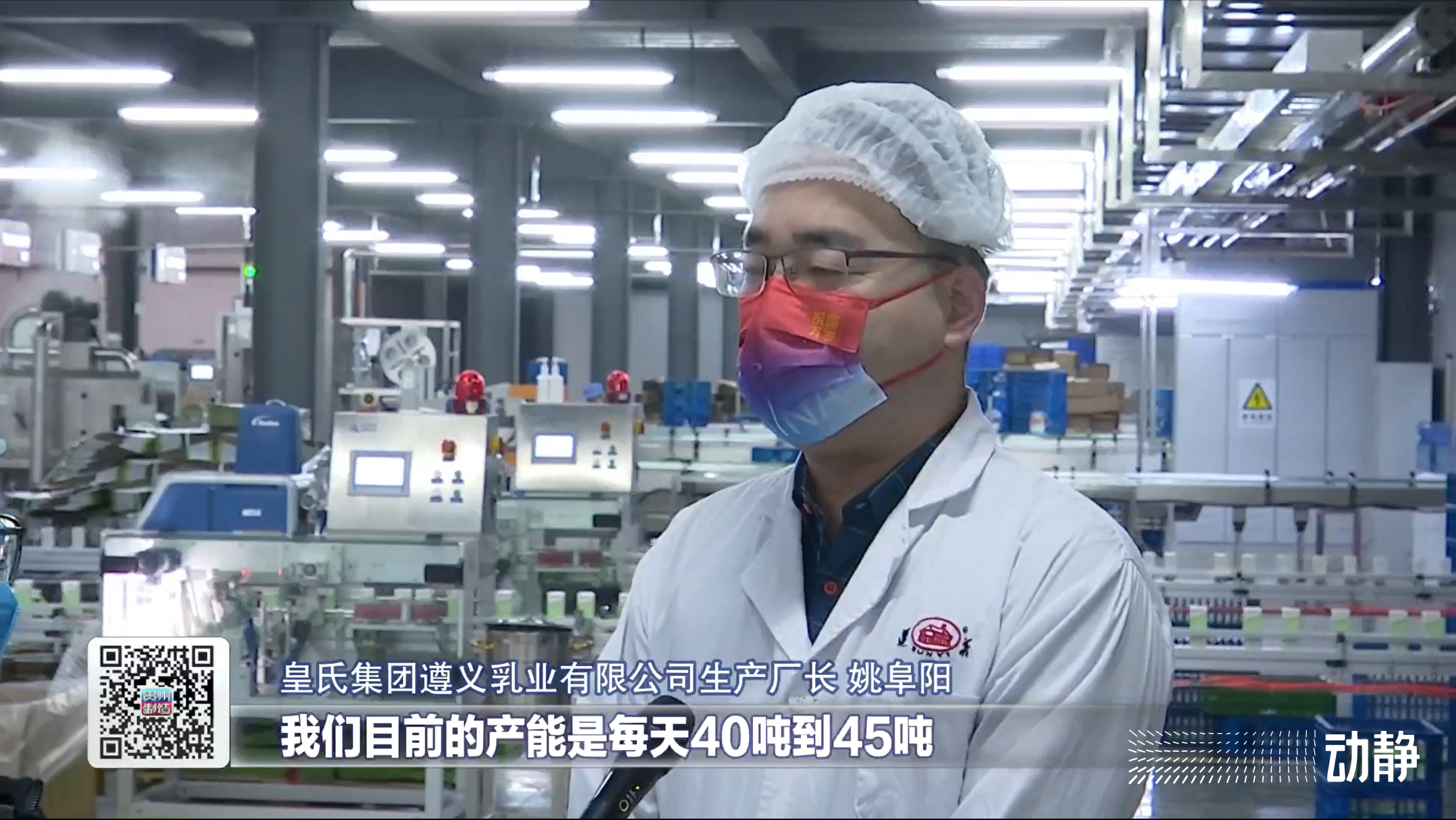 皇氏集团遵义乳业有限公司生产厂长姚阜阳说,他们目前的产能是每天40吨到45吨,每个月基本上可以达到1200吨到1300吨产能,采用的全是智能化的设备,保证了产品质量,节约了人员的成本,提高了生产效率。
