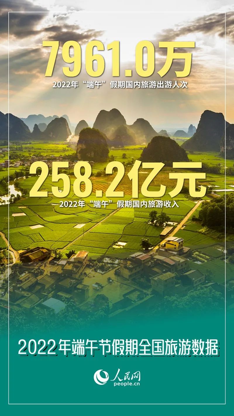 据文化和旅游部官网消息,经文化和旅游部数据中心测算,2022年端午节假期,全国国内旅游出游7961.0万人次,同比下降10.7%,按可比口径恢复至2019年同期的86.8%;实现国内旅游收入258.2亿元,同比下降12.2%,恢复至2019年同期的65.6%。全国文化和旅游假日市场总体安全平稳有序。
