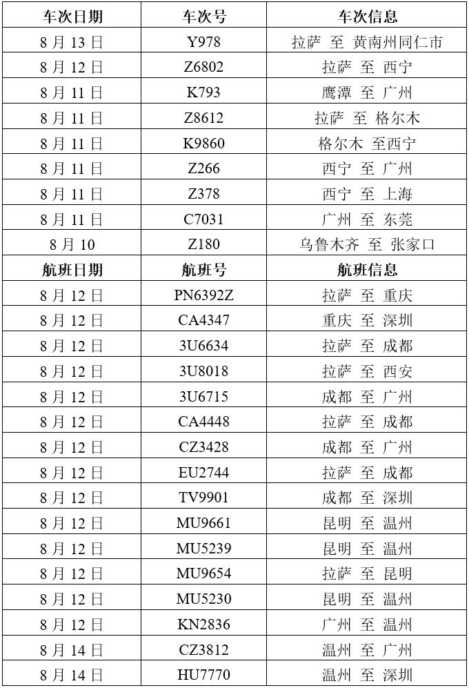 一、请乘坐过以下车次及航班的在黔群众尽快向社区报备,做好个人防护,积极配合当地疫情防控部门落实相关防疫措施。