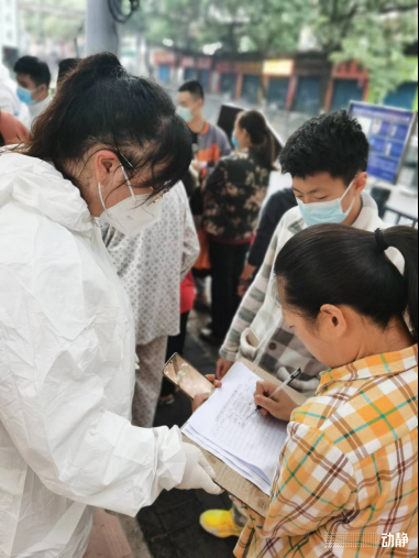 “小区住户的一句‘谢谢你们,你们辛苦了’ ‘你们吃饭了没有,需要给你们送饭吗’。让我十分感动,感到疫情面前大家同舟共济、团结一心。”青年干部罗吉9月3日在云岩区省府社区参加了抗疫服务。怕别人没听见喇叭,她挨家挨户的敲门喊做核酸,大爷大妈不会绑定手机,她不厌其烦地指导帮助操作,面对住户的各种问题他们耐心解答。她相信,乌云总会散去,一切都会好起来!