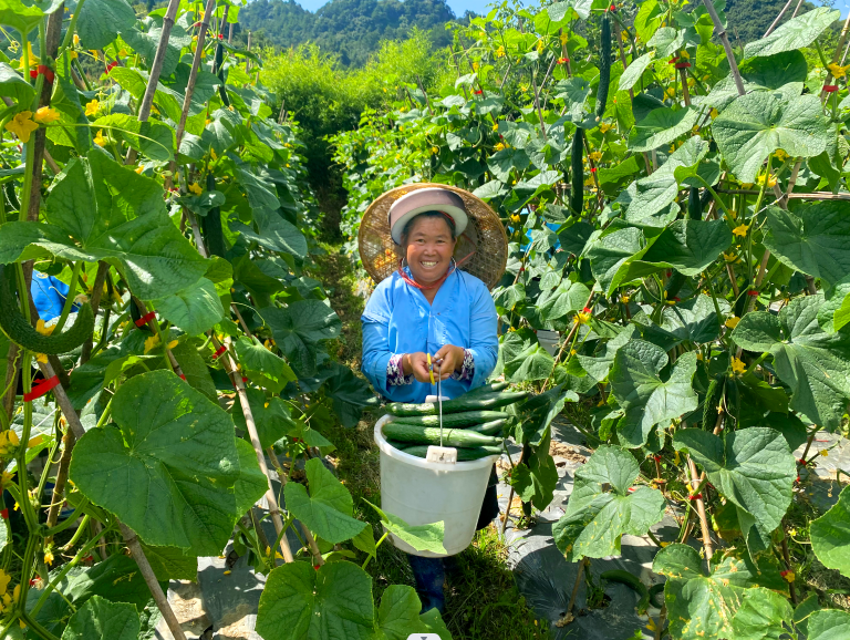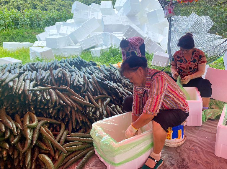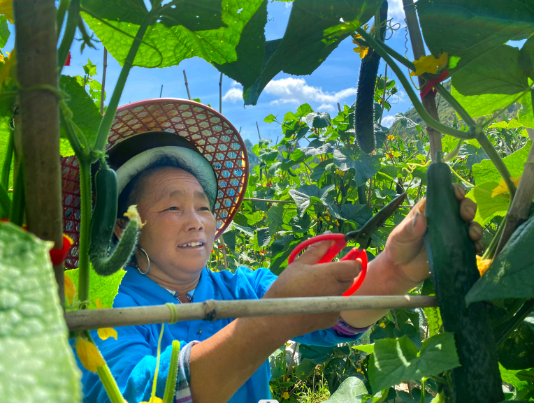 近日,走进云雾镇燕子岩村精品黄瓜种植基地,村民们欢声笑语把歌唱,用少数民族的语言歌唱着瓜果丰收的喜悦。