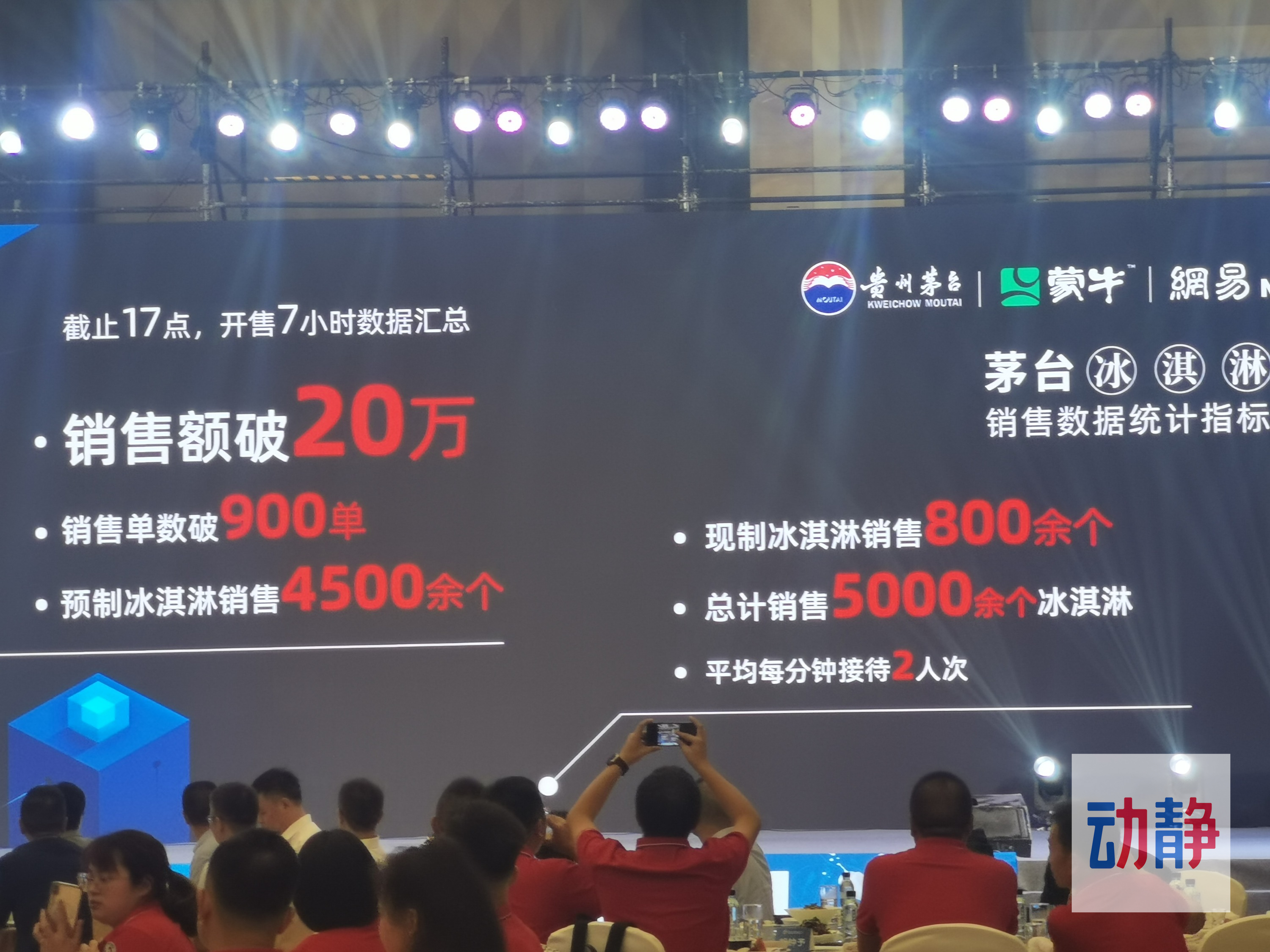 数据显示,截止17点,贵阳市的茅台冰淇淋NO.002店开售7个小时,销售额突破20万,销售单突破900单,现制冰淇淋销售800多个,预制冰淇淋销售4500多个,总计销售5000多个冰淇淋,平均每分钟有两人购买茅台冰淇淋。