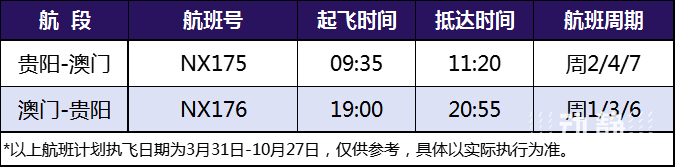 动静记者今天(3月18日)从贵州省文化和旅游厅获悉,为满足广大旅客出行需求,澳门航空计划于4月1日起复航贵阳-澳门-贵阳航线,贵阳和澳门两地人员来往、物资流通等将更加便捷。