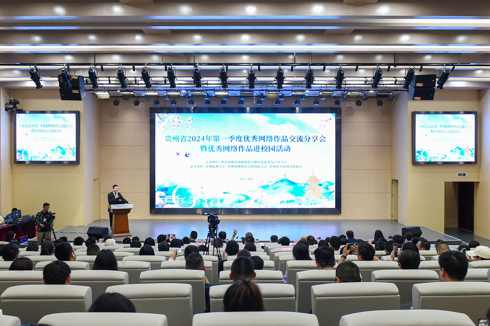 4月18日,贵州省2024年第一季度优秀网络作品交流分享会暨优秀网络作品进校园活动在贵州民族大学举行。