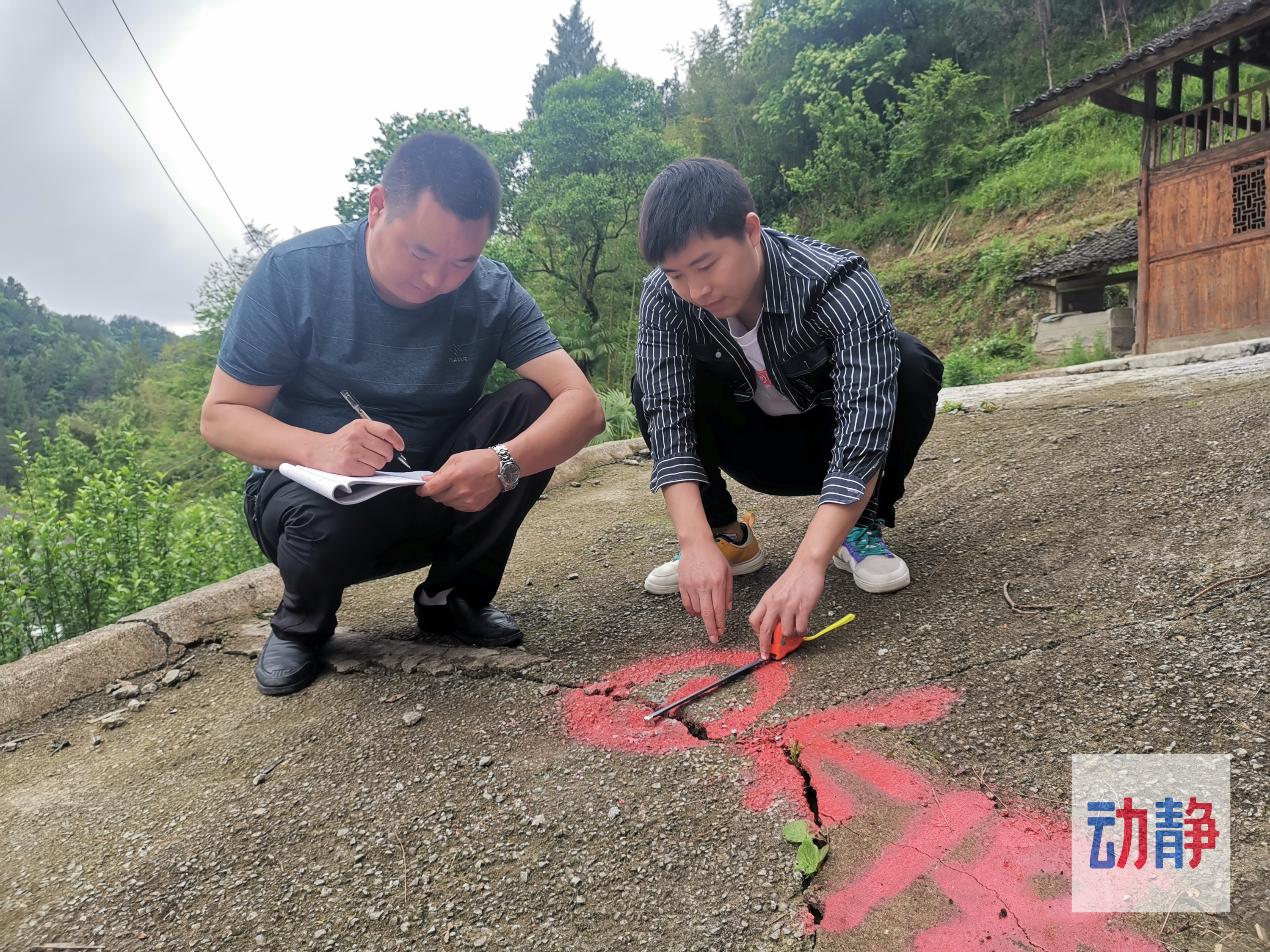 目前正值汛期,枫香乡新屯村境内有两处滑坡隐患点,该乡强化地质灾害隐患点排查力度,重新印刷安全撤离路线标识,检查自动滑坡预警伸缩仪是否正常工作,利用大喇叭、走访入户等方式宣传防灾避险知识,进一步提升群众防灾意识。