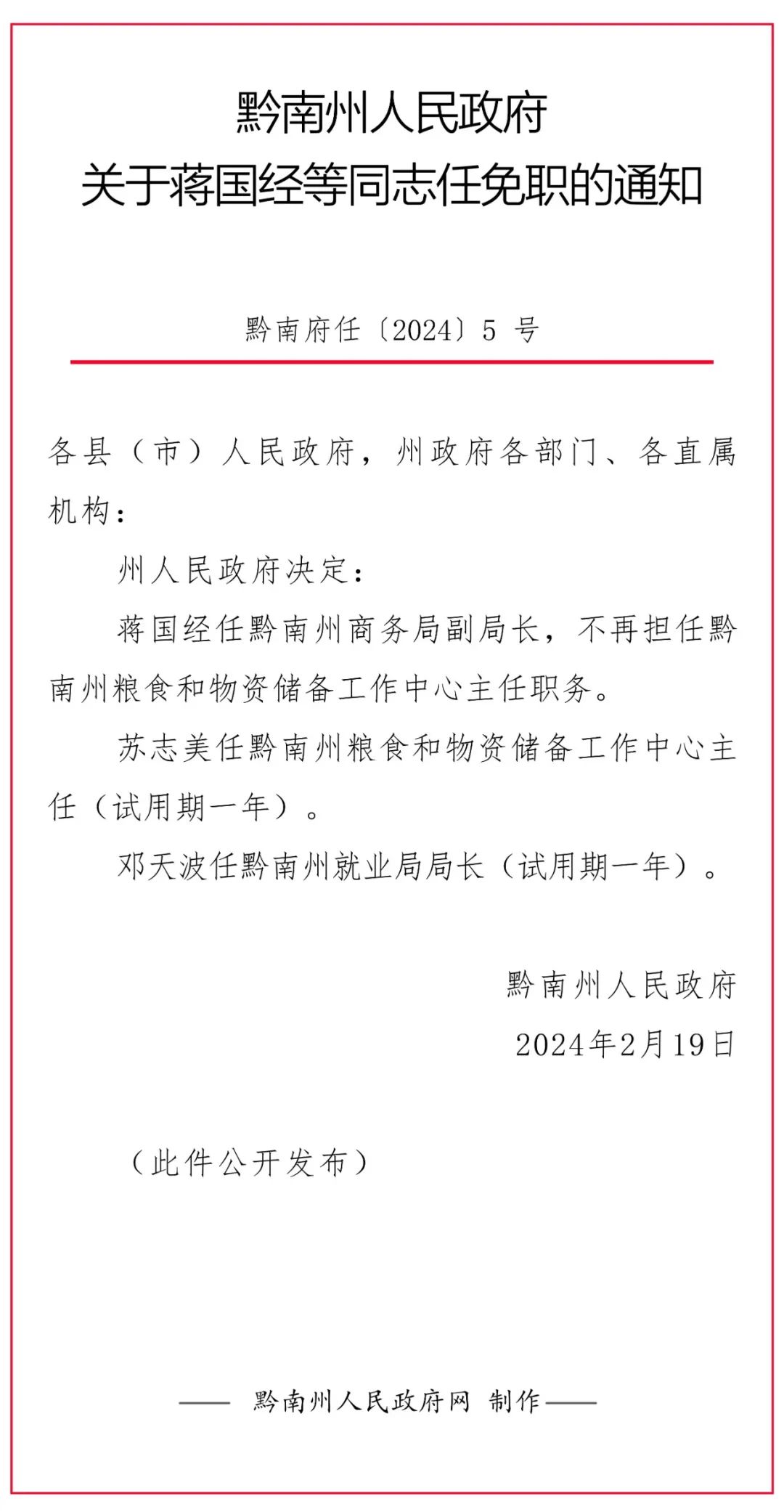 贵州省人民政府关于徐刘蔚等任免职的通知