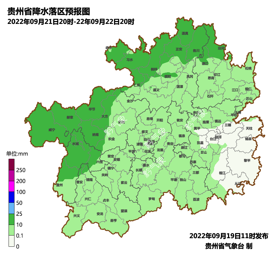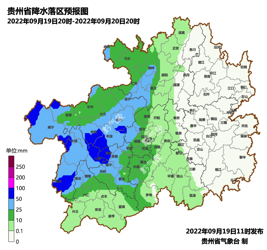 据贵州省气象台预报,今天午后到夜间,省的西部地区有分散阵雨或雷雨,西北部局地中到大雨,个别乡镇有暴雨;20日,我省中西部地区降温降雨天气过程,局地中到大雨,部分乡镇有暴雨,气温下降2~6℃。