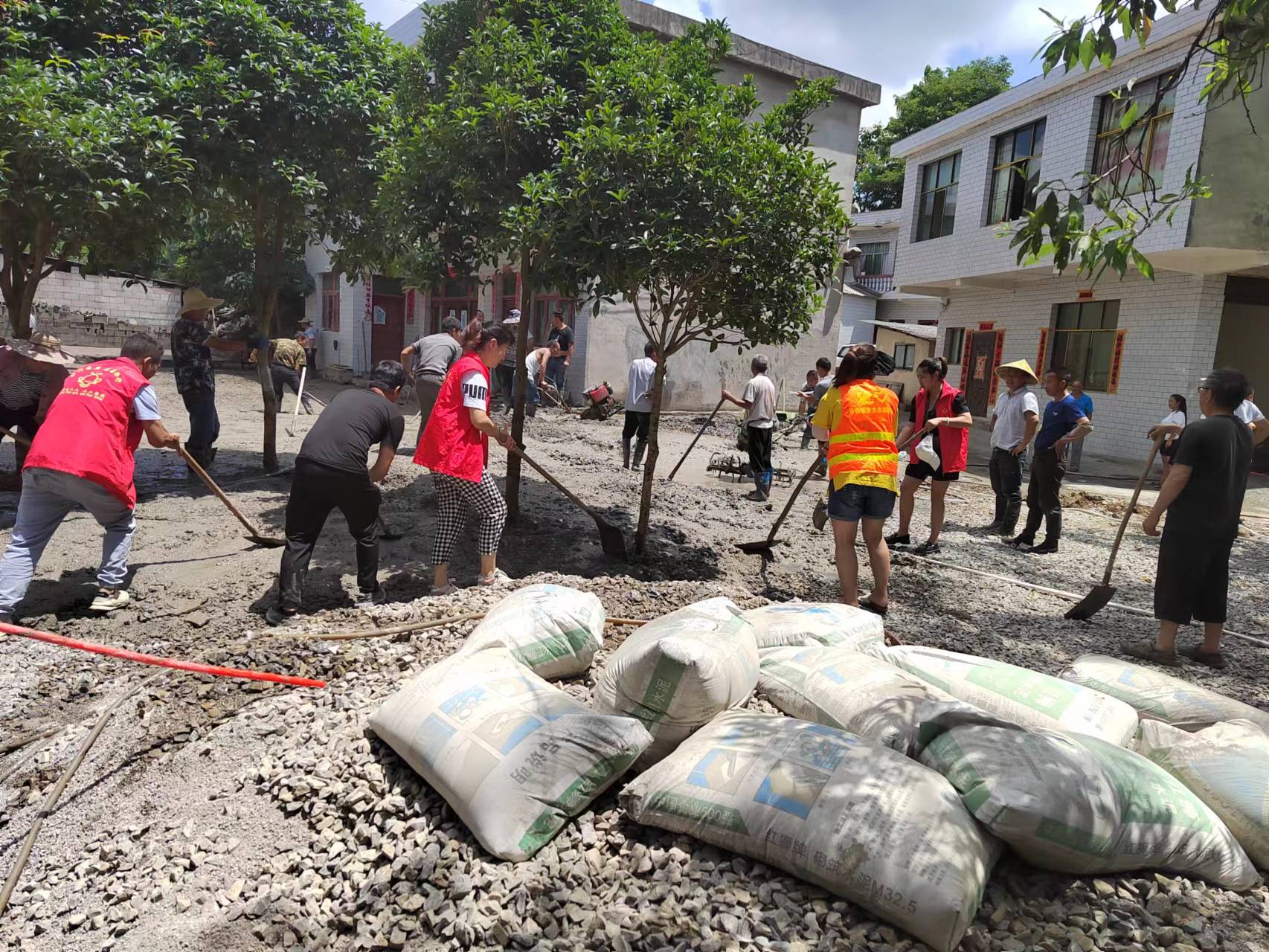 7月10日,谷脚镇谷脚社区牛滚塘组热闹非凡,无论是长期居家的还是在外务工的群众,亦或是社区两委的工作人员及志愿者,都聚集到一起,手持锄头、铲子,背的背、抬的抬,五六十人顶着烈日干得热火朝天。