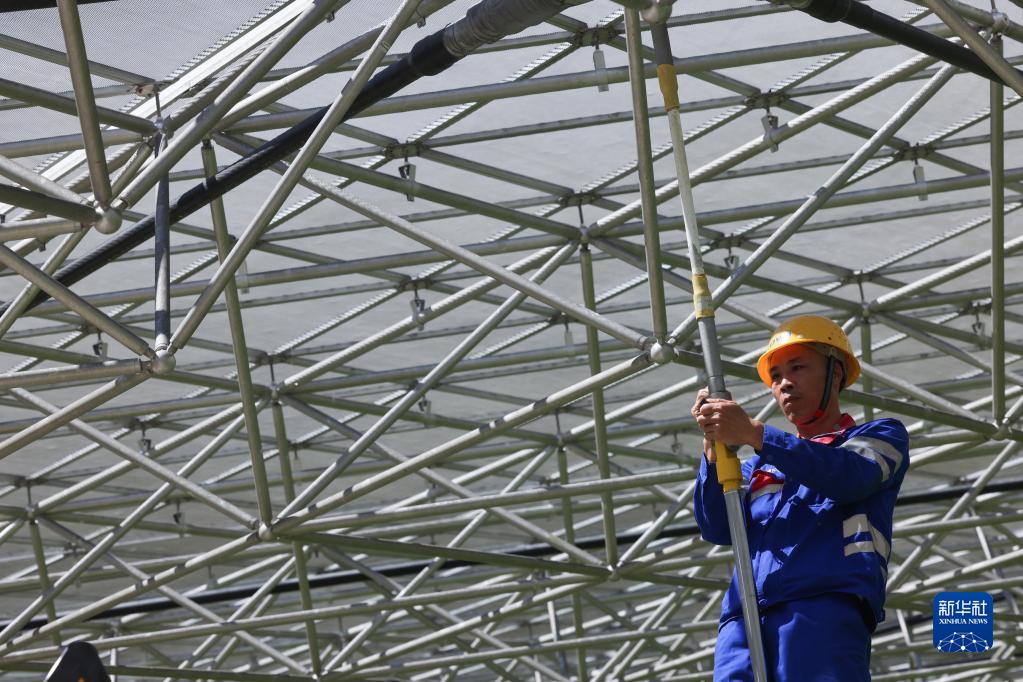 7月22日,工作人员对“中国天眼”的反射面板进行维护保养。