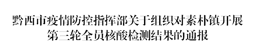 9月8日,黔西市疫情防控指挥部对素朴镇组织开展第三轮全员核酸检测,共完成采样18121人份,检测结果均为阴性。