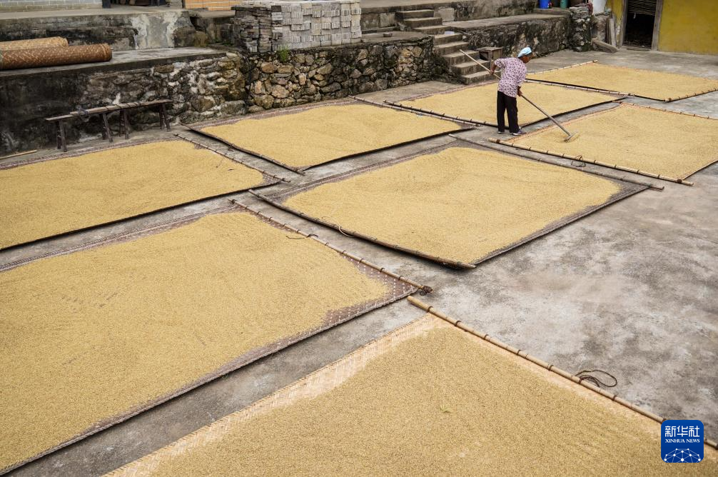 金秋时节,农民抢抓晴好天气抢收、抢晒,一派丰收景象。