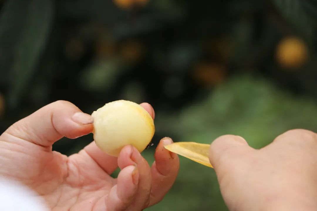 “我家就住这附近,这里的枇杷个头大、味道甜,所以每年我都会带亲朋好友来这里采摘。”游客胡莹一边采摘枇杷,一边品尝,刚摘下来的枇杷,金黄喜人,剥开便露出饱满的果肉,入口清甜,直呼好吃。