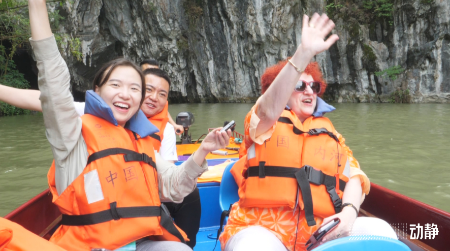 “为旋律而滚动的道路,我们一路欢歌……”哼唱歌曲的这位女士是塞浦路斯的驻华大使玛莎·玛夫罗玛蒂斯。在安顺龙宫景区,乘着小艇进入溶洞时,丰富的喀斯特地貌让她惊喜不已。