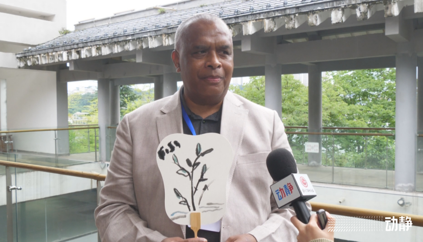 斐济驻华大使马纳萨·坦吉萨金鲍向记者展示了他用毛笔完成的水墨画,“这幅画所描绘的是花溪十里河滩的植物,灵感是来源于我们今天早上沿十里河滩漫步时,我们看到的植物和美景。贵州的生态环境得到了很好的保护,贵州已经为世界生态文明树立榜样。”