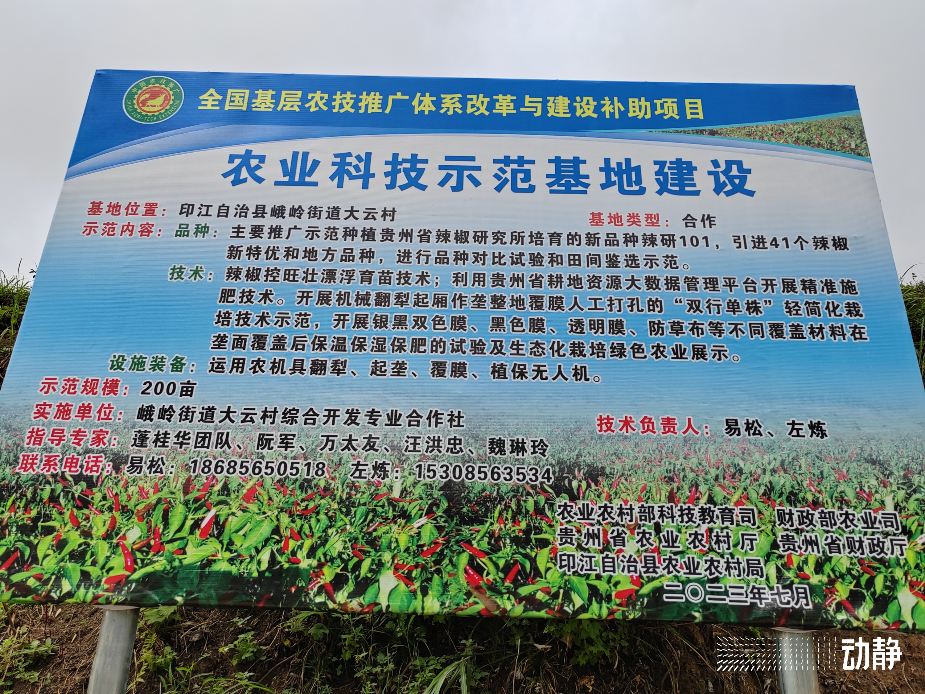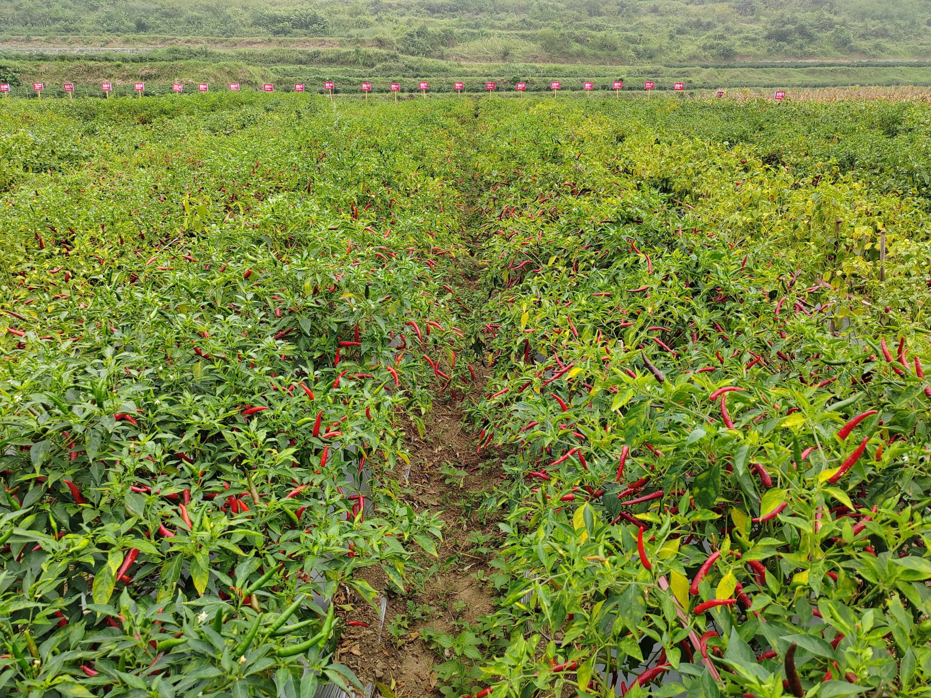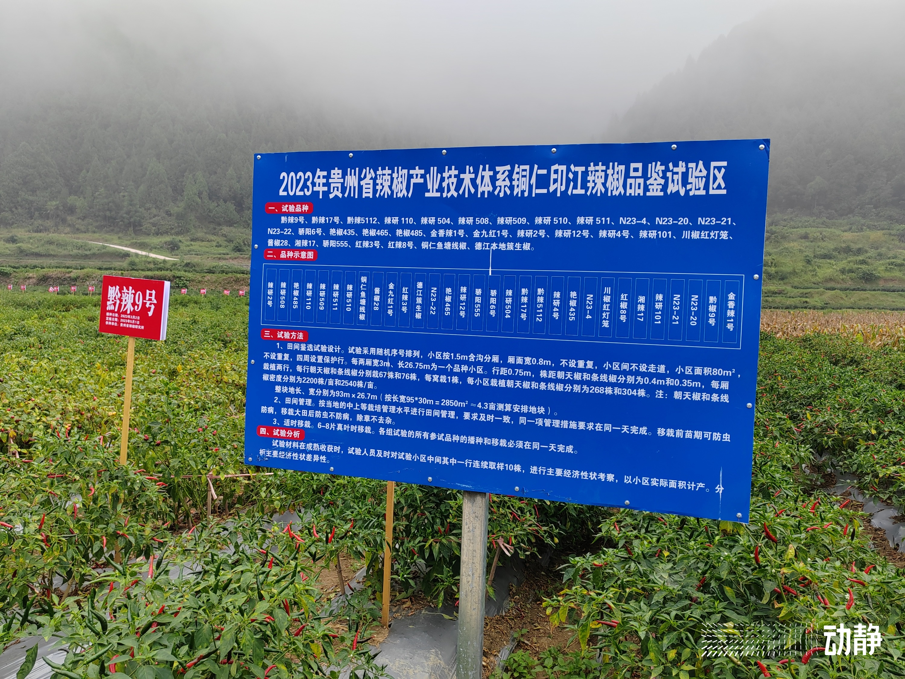 印江大云村辣椒种植基地是由省农科院辣椒研究所铜仁市农业农村局和印江自治县人民政府共同实施的“2023年贵州省辣椒产业技术体系铜仁印江辣椒品鉴试验区”,试验品种包括辣研101、辣研510、川椒红灯笼、黔辣9号及地方品种等41个品种。