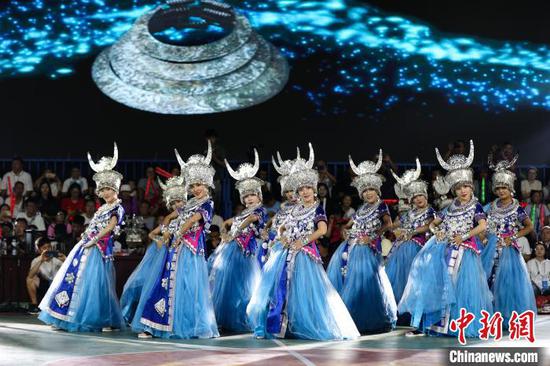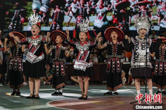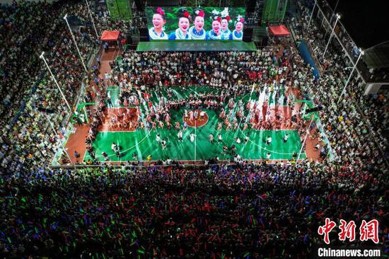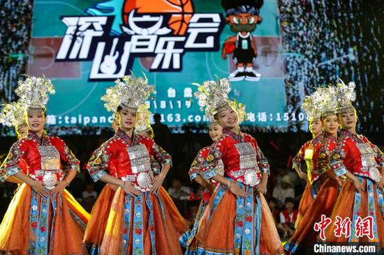 8月19日晚,贵州省黔东南苗族侗族自治州台江县台盘村“村BA”现场上演深山音乐会,为球迷带来了一场音乐和民族文化盛宴。