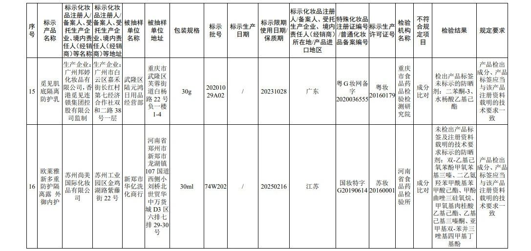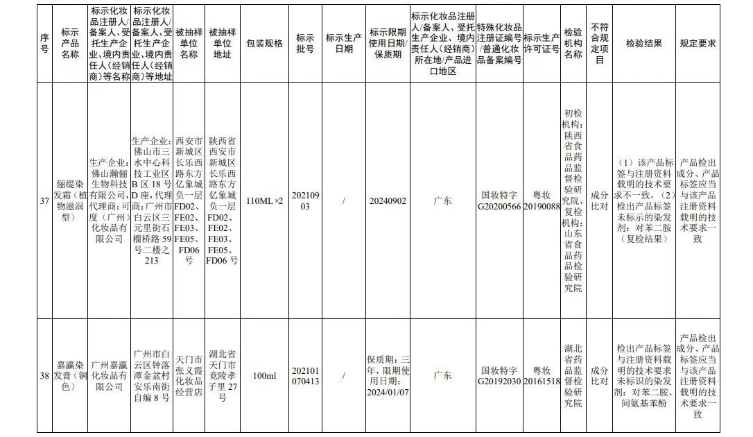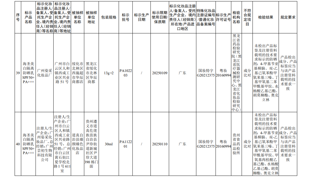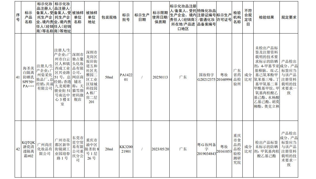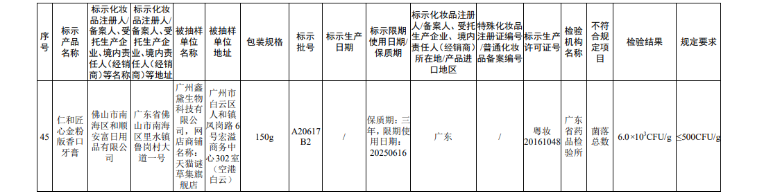 45批次不符合规定化妆品