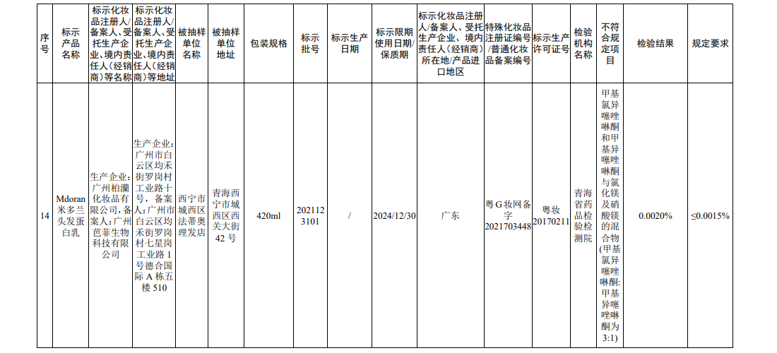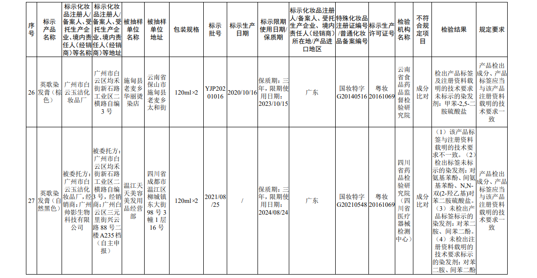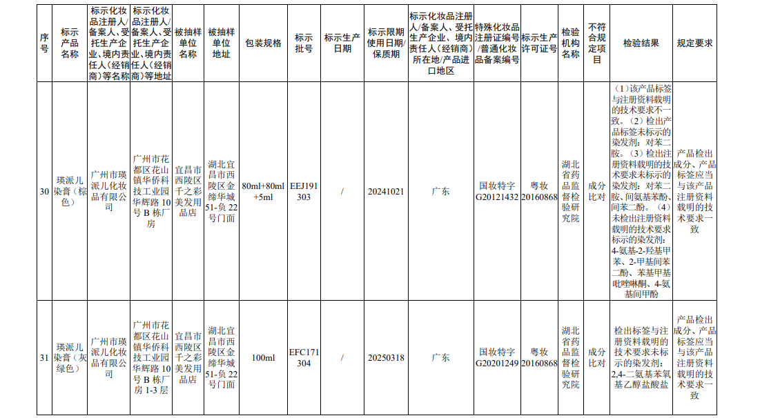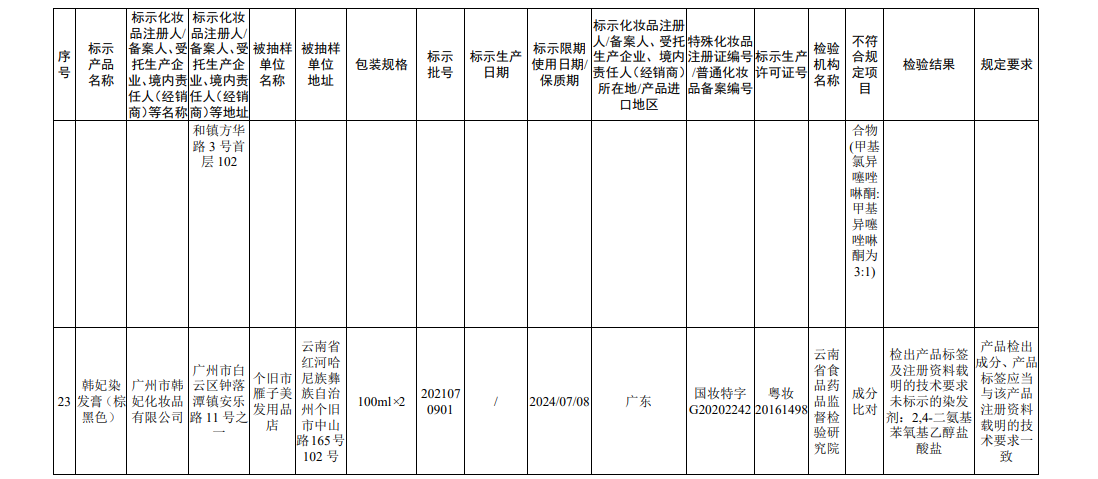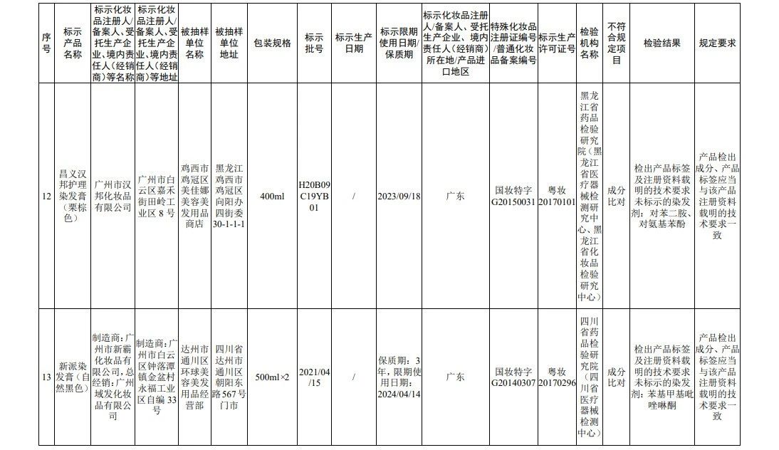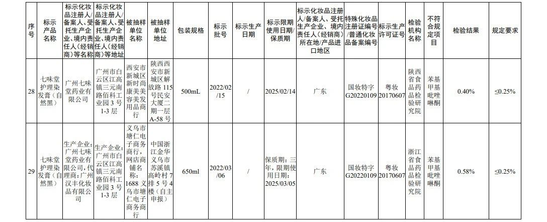 据国家药监局网站消息,在2022年国家化妆品监督抽检工作中,经海南省药品检验所等单位检验,产品标签标示为广州赛丝化妆品有限公司生产的赛丝之秀润黑露(自然黑)等45批次化妆品(含牙膏,下同)不符合规定。