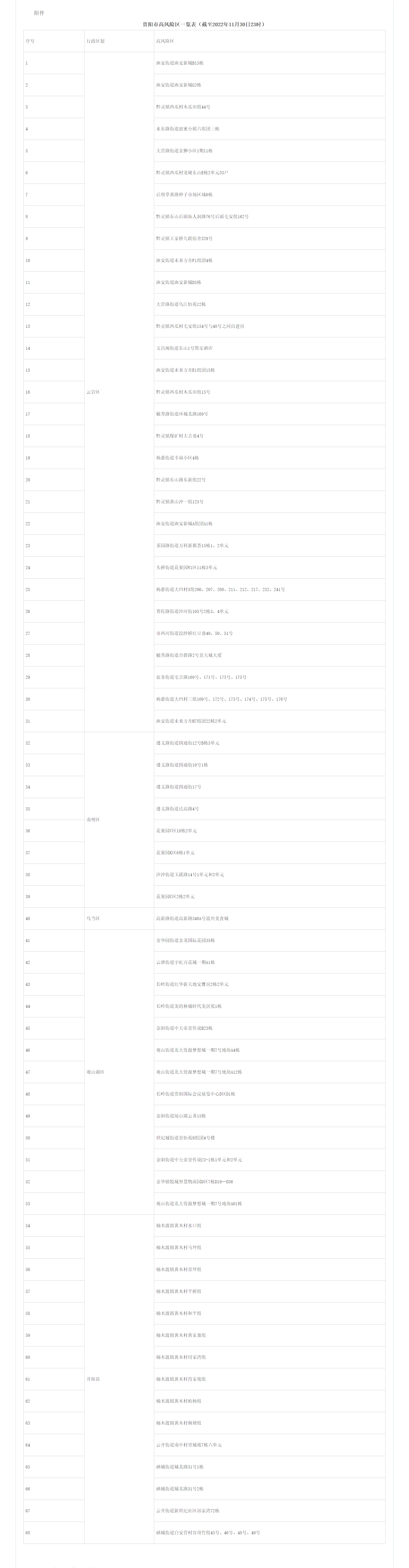 附件:贵阳市高风险区一览表(截至2022年11月30日23时)
