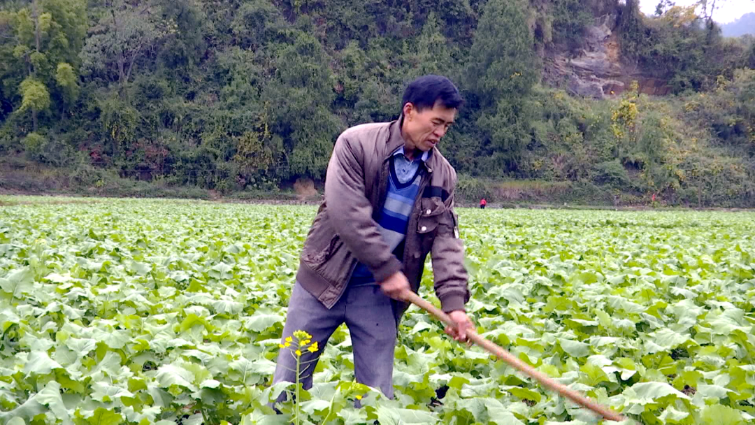 土溪镇大连村村民冉德华说:“往年都是春季种一季水稻,冬季种油菜很少,人都在家里面。今年这一片全部栽上了油菜,目前我们都在忙着培土、除草。而且油菜种植出来销路不愁,在我们当地就可以把它销了。”