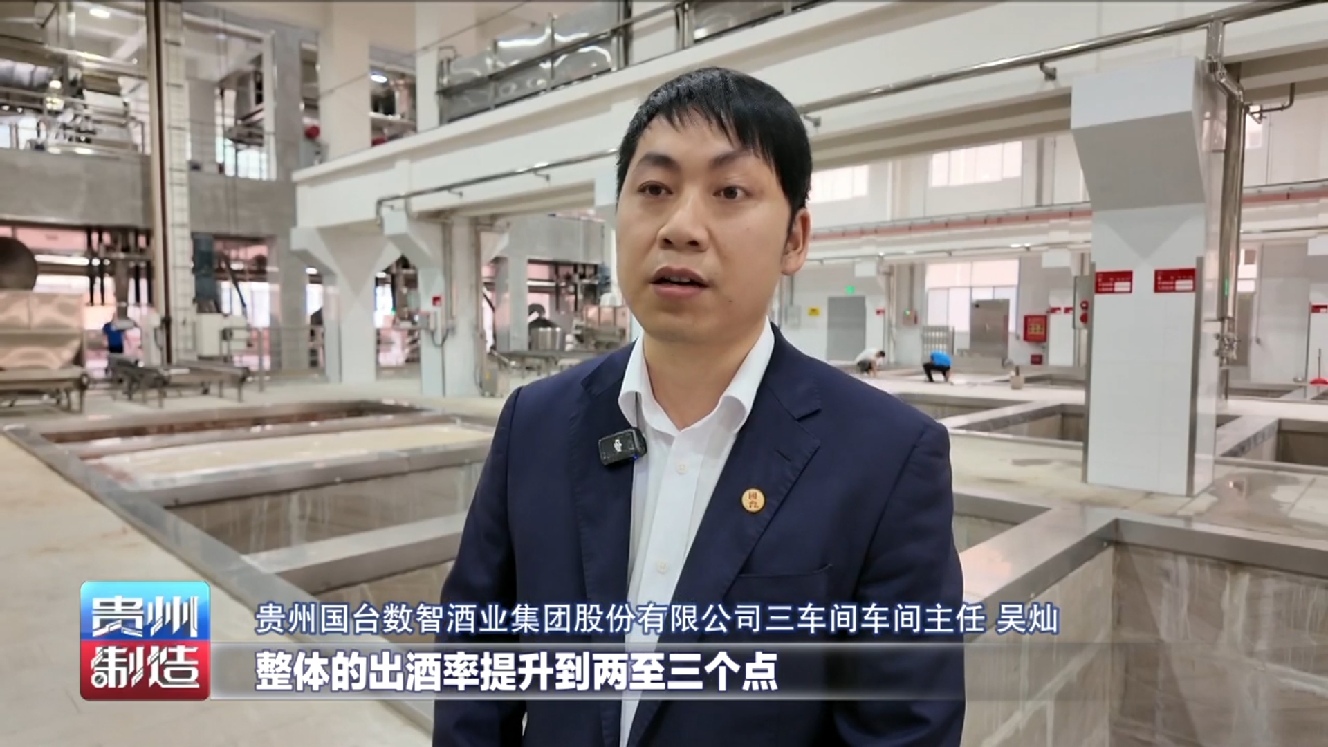 贵州国台数智酒业集团股份有限公司三车间车间主任吴灿说,整体的出酒率提升了两至三个点,土地使用(面积)变少,总的利用率变大,人工成本大约降低了40%, 对每个环节能够更精准地把控。
