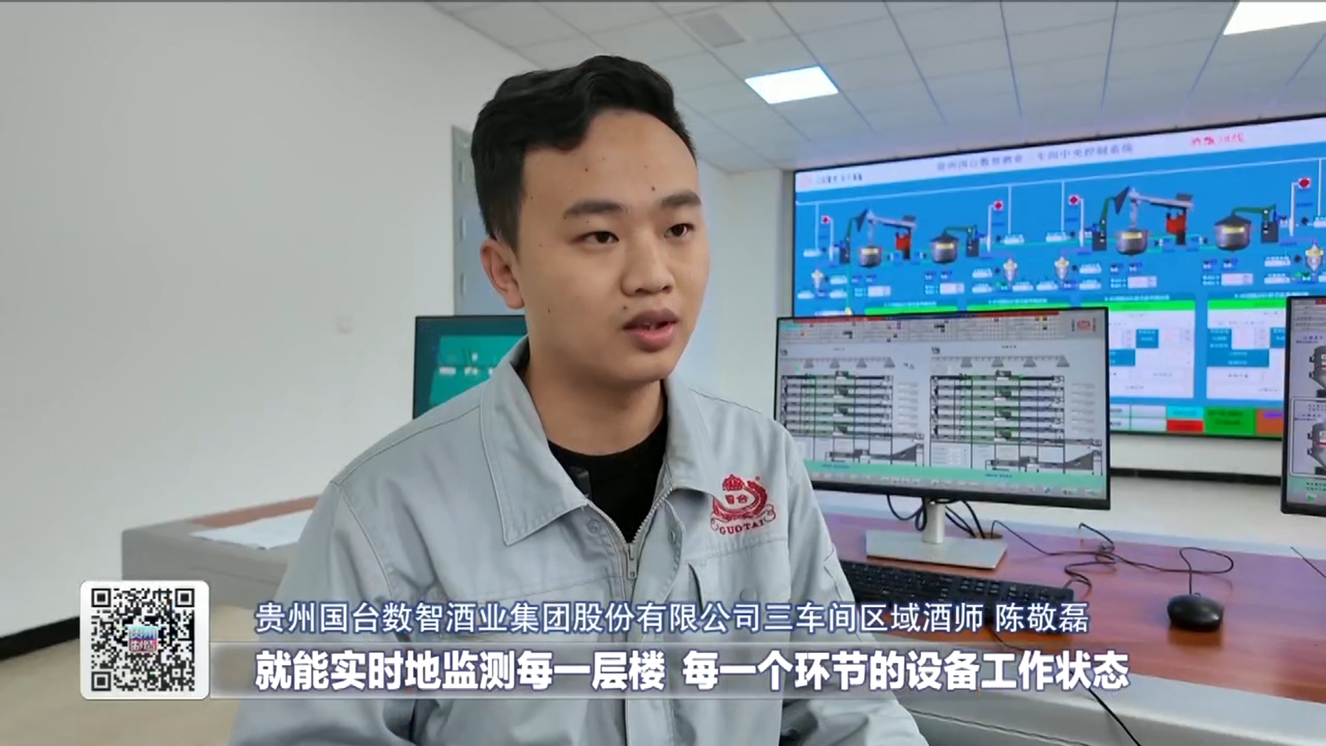 贵州国台数智酒业集团股份有限公司三车间区域酒师陈敬磊介绍,通过电脑,就能实时监测每一层楼、每一个环节的设备工作状态,对目前的工作状态有更好的判断,出现问题可以及时指挥和维护。