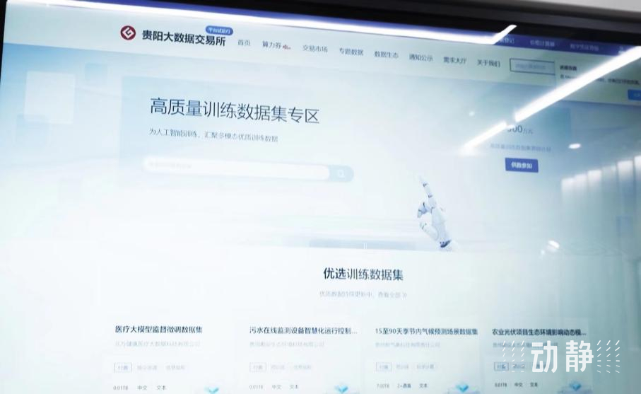 在贵阳大数据交易所,为人工智能训练提供的高质量数据集专区近日上线了,数据来自应急、水务等行业部门,75%是全球首发。