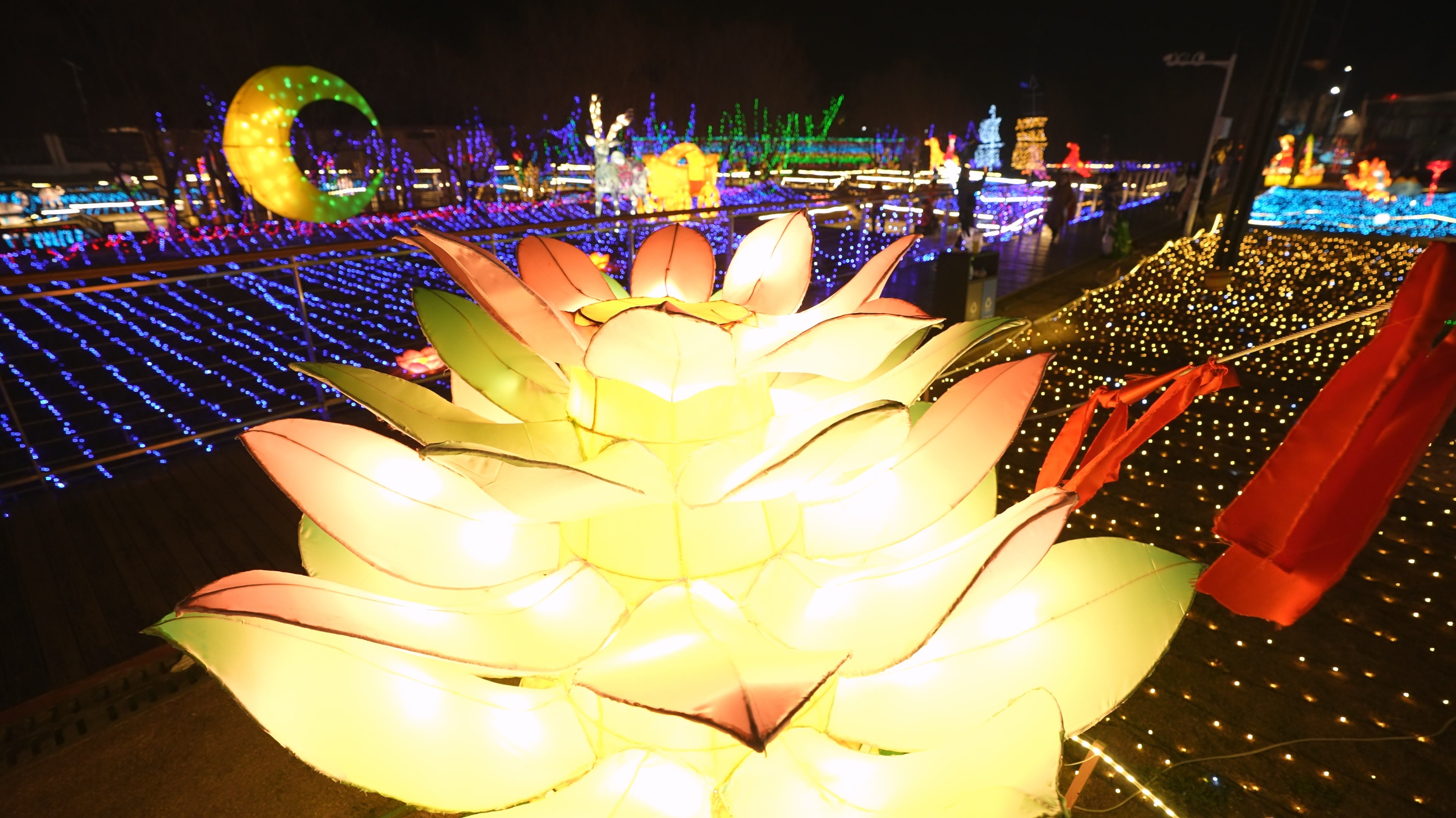 这里有造型各异的彩灯、漂亮的花灯长廊,
