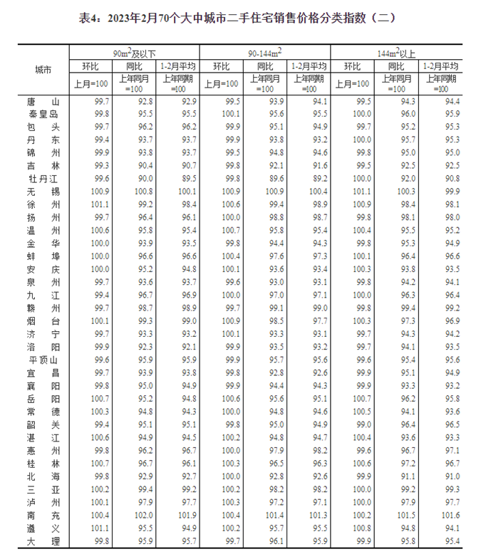从2月二手住宅房价指数来看,上涨城市数量为40个,较上月增加27个;持平城市0个,与上月一致;下跌城市30个,较上月减少27个。从涨跌幅情况来看,70城二手住宅价格环比上涨0.12%,实现自2021年8月以来的首次转正,上涨城市平均涨幅为0.41%,涨幅扩大0.04个百分点。从各等级城市来看,一线、二线、三线城市二手住宅环比分别为0.7%、0.1%、持平,一线城市维持强势复苏态势,二线城市环比回正,正式踏入企稳修复道路,三线城市止跌。
