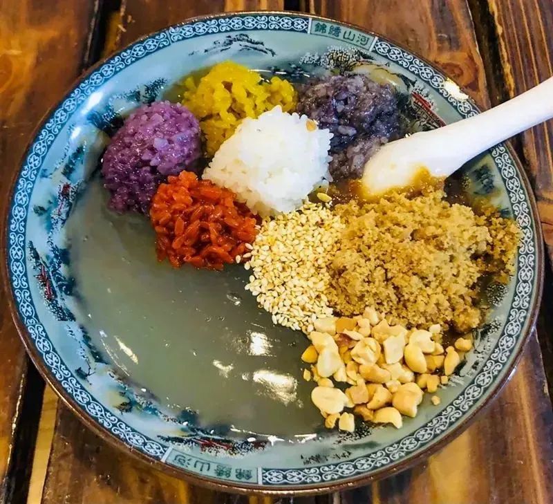 再往东,就走到了富康国际酒店背后的街,它叫桔香路,十年前,这里还是一片荒芜,如今,却以梦乐城为中心,成为了兴义中央活力区,这里汇聚了时尚前沿、潮流购物、传统名优小吃,就连一整片安置区,都热闹非凡,美食云集,随便一条巷子,都能找到一家需要排队的饭馆。清晨排队的饭馆,同样不在少数,羊肉粉、三合汤、鸡肉汤圆、刷把头、杠子面、贞丰糯米饭……外地游客可以在此一溜地感受到兴义饮食文化,生活的便捷,便是如此。但是,数得清的是这一排的特色小吃,数不清的是无数兴义人对家乡的回忆。据说,舌尖和味蕾的记忆,最是难以更替。兴义人,饮食精致,从杠子面的分量就可看出,跟北方城市一碗比头还大的汤面相比,不得不令人想起郁达夫先生笔下的南方之秋与北方之秋的对比。