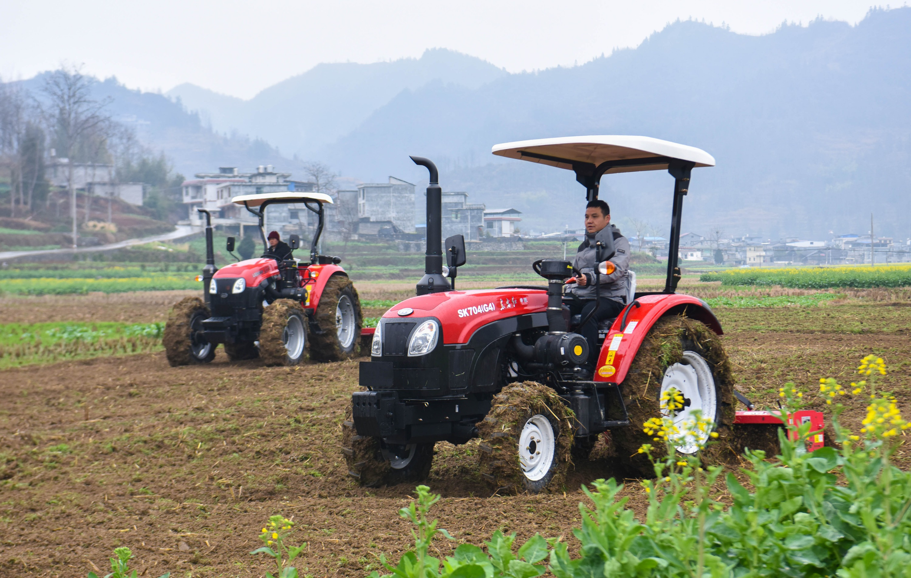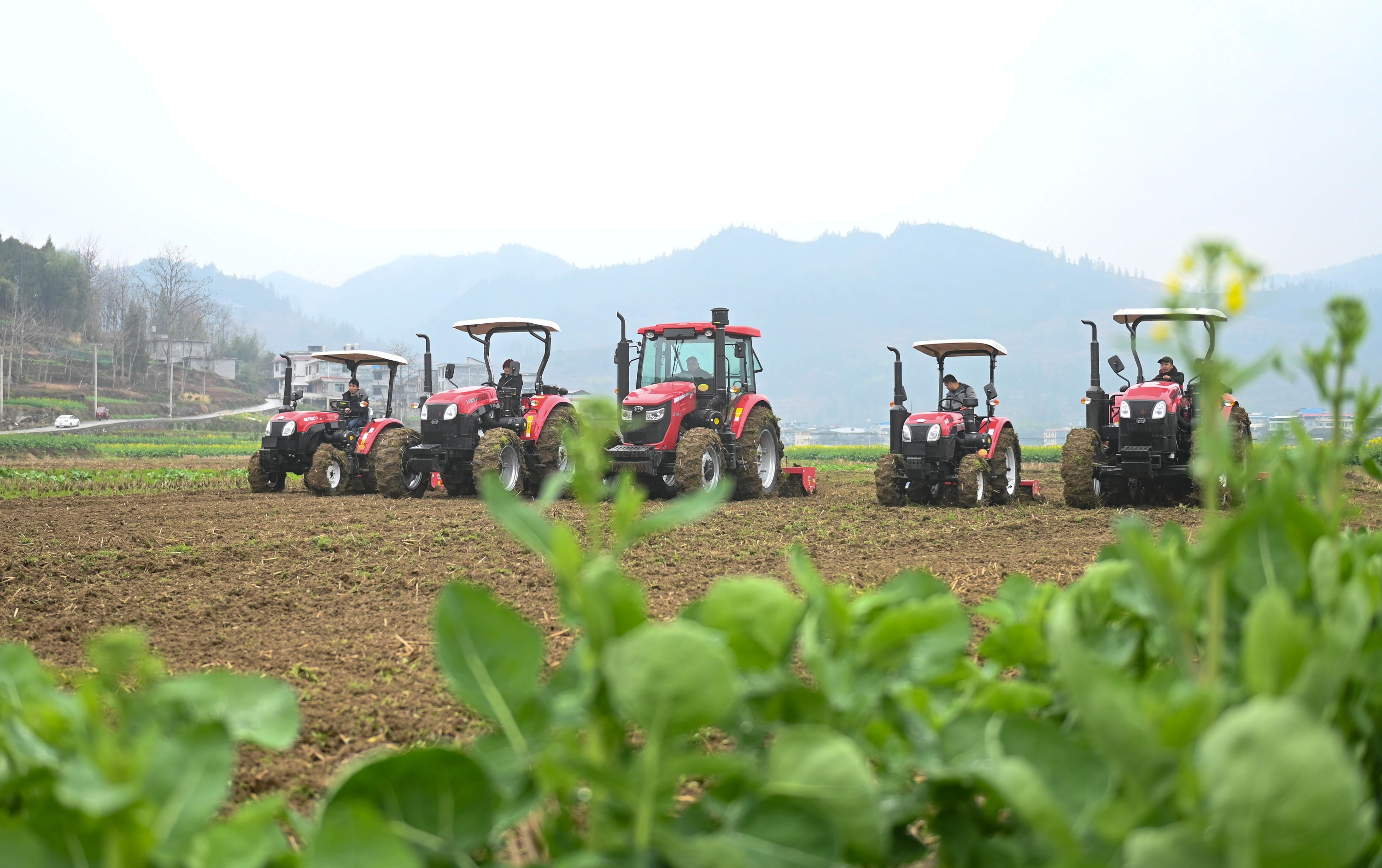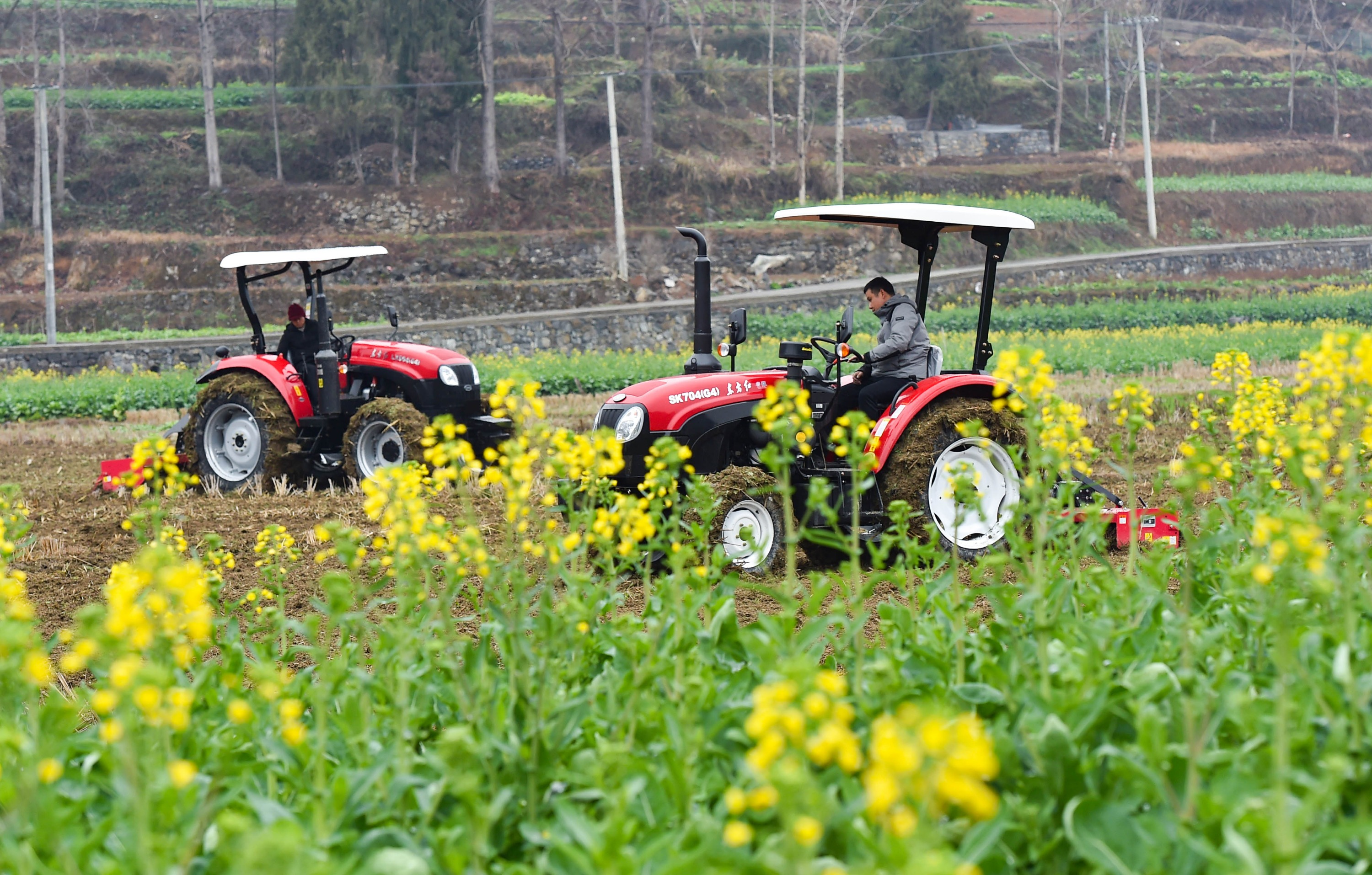 随着气温回升,松桃苗族自治县甘龙镇的人们抢抓农时,进行田间管护、翻耕土地等,一派繁忙的“农机闹春耕”景象。