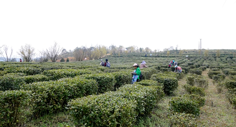 春分至,采茶忙。时下,正值明前茶采摘高峰期,这些天,在盘州市羊场乡何家庄村飞马茶场,村民们正忙着采摘明前春茶,忙碌的身影、悠扬的山歌,交织成春日最美的音符。