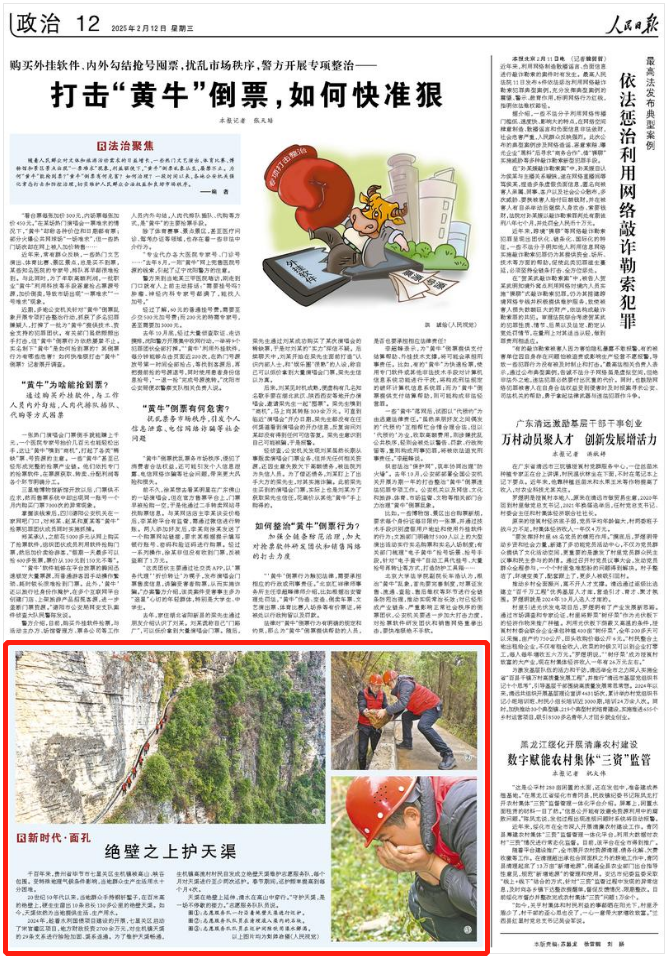 今天(2月12日),《人民日报》刊发新闻《绝壁之上护天渠(新时代·面孔)》。
