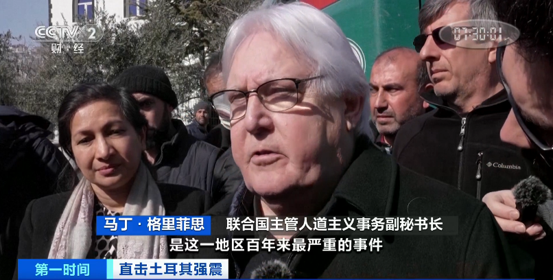 当地时间11日,联合国主管人道主义事务的副秘书长马丁·格里菲思,在土耳其卡赫拉曼马拉什省视察灾区时表示,此次强烈地震是这一地区百年来最严重的事件。他还表示,地震最终遇难人数目前难以估计,他个人认为会达到当前统计的遇难人数的两倍甚至更多。