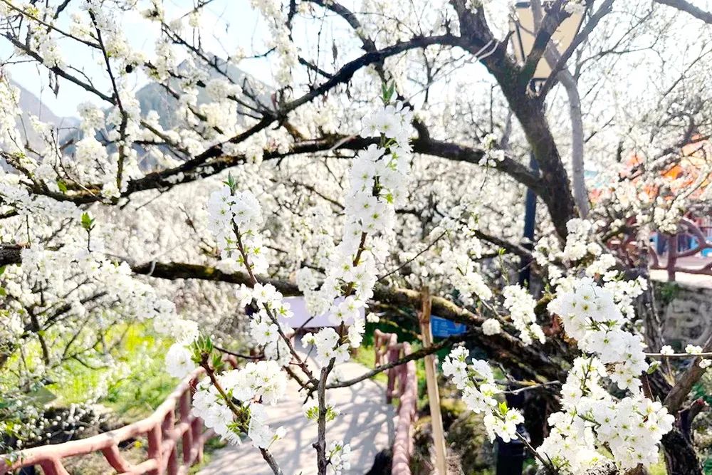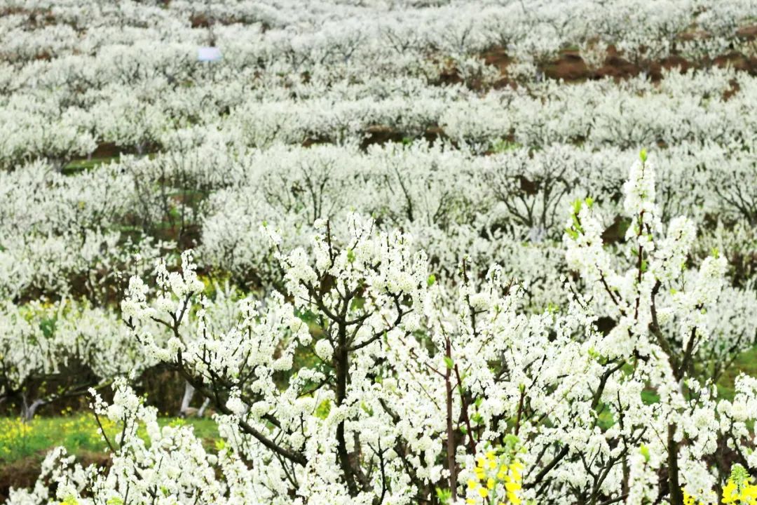阳春三月,在“中国空心李之乡”、国家4A级景区沿河土家族自治县南庄村,万亩李花在暖阳的映照下,竞相绽放,一团团一簇簇俏立枝头,繁茂如雪,一幅“李花怒放一树白,遥望疑是春飞雪”的花海美景,为水墨般的群山笼上一层白色头纱。
