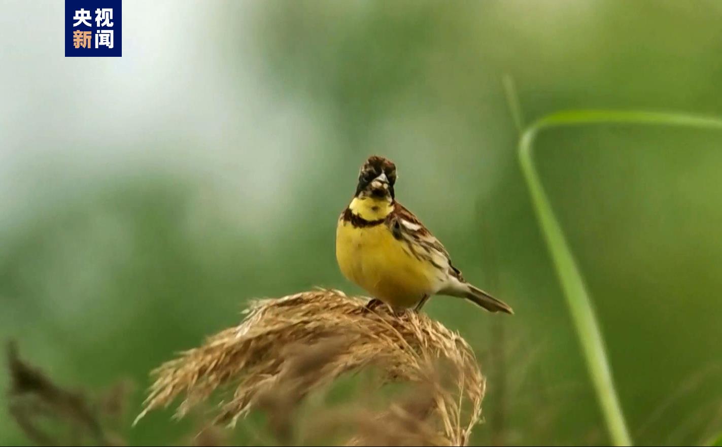 黄胸鹀属小型鸟类,体长14-15厘米,其喙为圆锥形,雄鸟胸部呈鲜黄色,雌鸟胸部呈淡黄色,栖息于低山丘陵和开阔的平原地带,尤其喜欢溪流、湖泊和沼泽附近的灌丛、草地。2022年5月,观测人员在马洲岛生态湿地首次发现了全球极危物种——黄胸鹀,不过数量仅有10只左右。今年,观测人员已经发现30多只黄胸鹀马洲岛西侧的湿地觅食嬉戏,它们把马洲岛作为迁徙中很好的栖息和补给地。