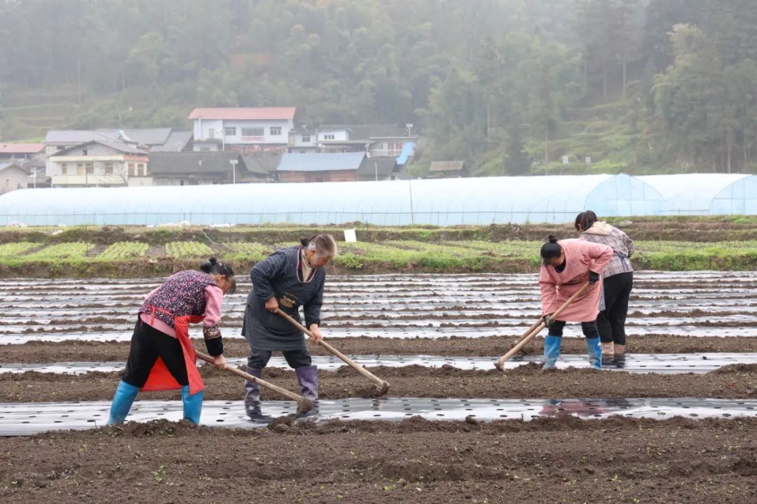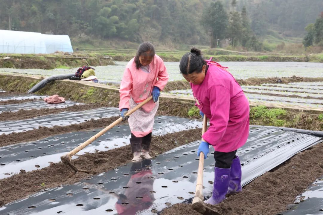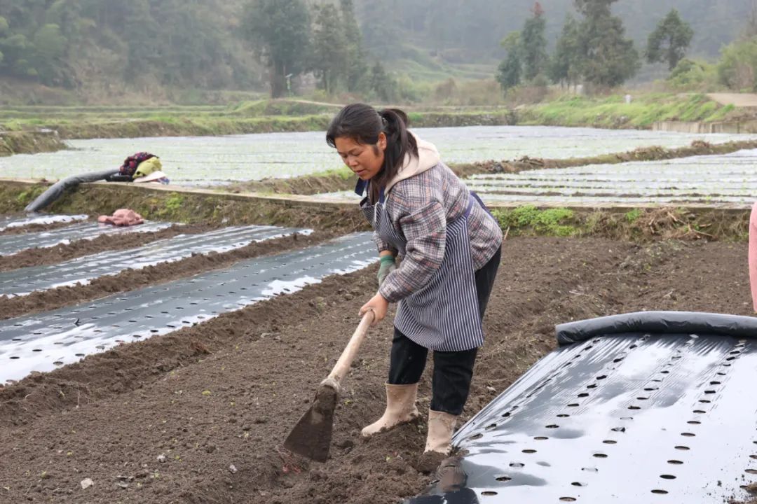 在杏山街道小堡坝区种植大户宋仕前所承包的100多亩蔬菜基地里,村民们正忙着平整耕地、铺膜、播种幼苗,有条不紊地开展蔬菜栽种。