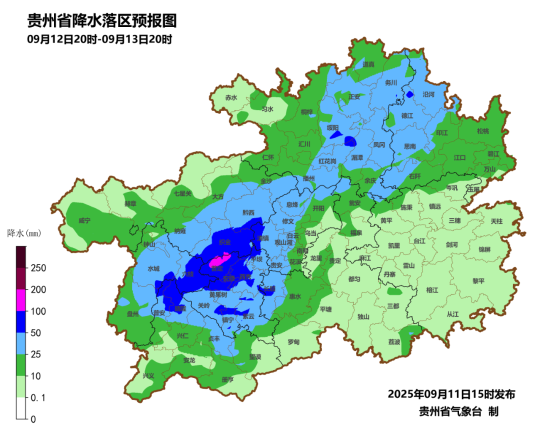 12日夜间到13日白天,省的中西部和北部地区阴天有阵雨或雷雨,雨量中雨,毕节市中南部、六盘水市东部、黔西南州北部、贵阳市西部和北部、安顺市、遵义市东部和南部、铜仁市西部的局部地区有大雨到暴雨,个别乡镇大暴雨,其余地区阴天间多云有分散阵雨或雷雨;