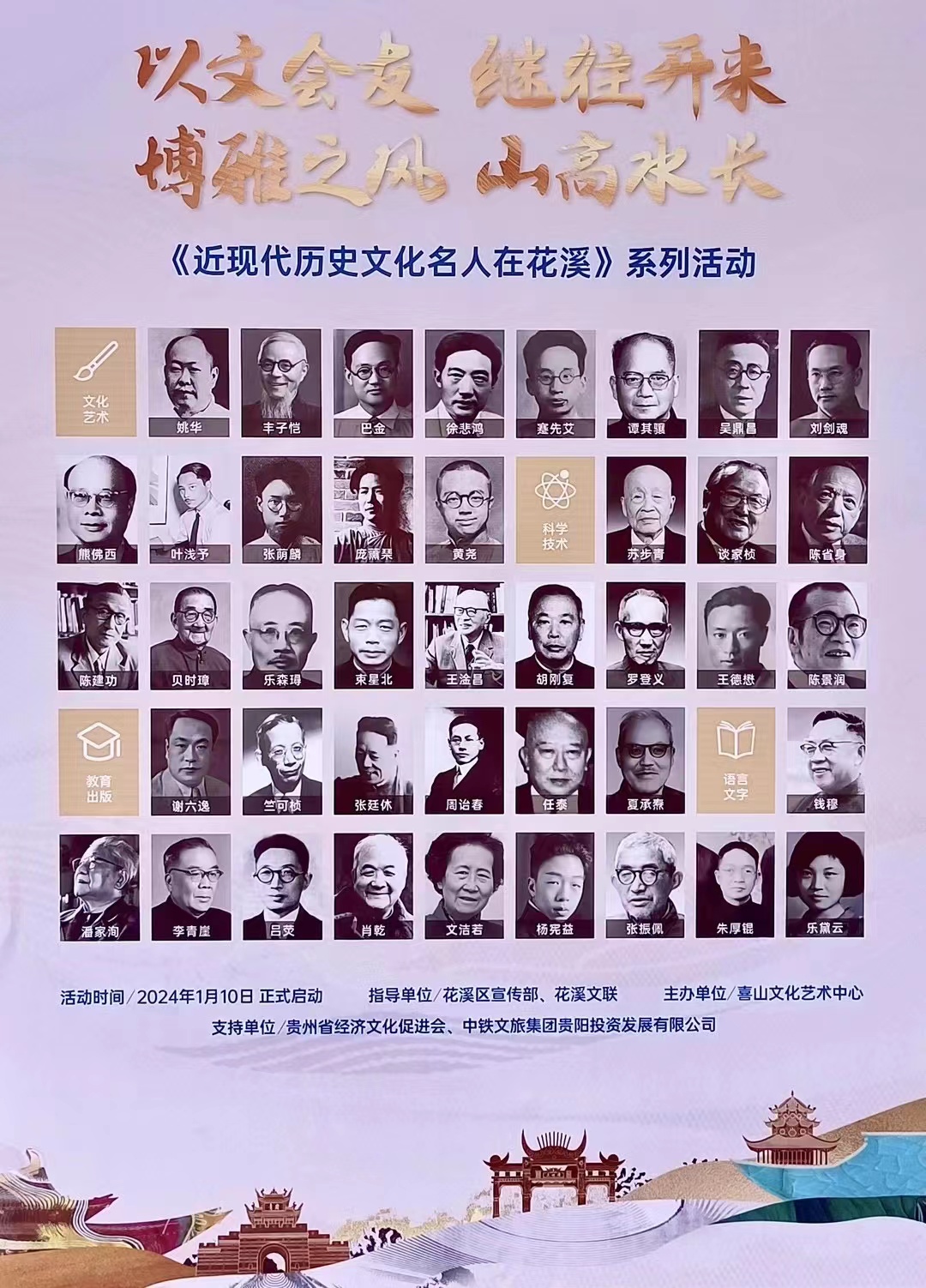 《近现代在花溪的中外历史文化名人》喜山文化艺术中心发起编辑,该书在突出文化艺术名人在各自领域所取得的成就的同时,还将发掘他们的轶事趣闻,编写成一本生动、活泼,有趣,兼具学术性与知识普及性的读物。