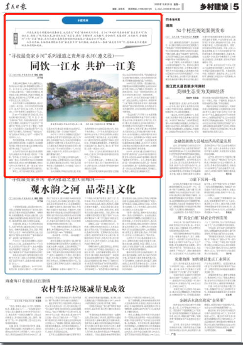 “经过连续几年开展小水电清理整改、拆除养殖网箱和养鱼拦水坝、治理白酒企业污染、恢复溪沟生态等行动,赤水河(遵义段)流域的生态环境持续向好。”贵州省遵义市河长办副主任李中蔚说。