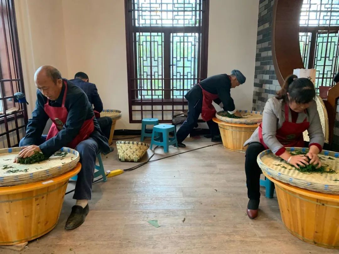 比赛现场,13名制茶选手按顺序抽签并领取茶青,在现场工作人员的引导下,进入操作点制茶。比赛开始,大家纷纷亮出看家本领,按照杀青、揉青等手工绿茶制作工艺流程,一丝不苟、专心致志地制作茶叶,现场弥漫着沁人心脾的茶香。选手们在规定时间内完成手工制茶后,评委们从操作过程、产品外型、产品品质三个方面观察记录,给予量化评分。