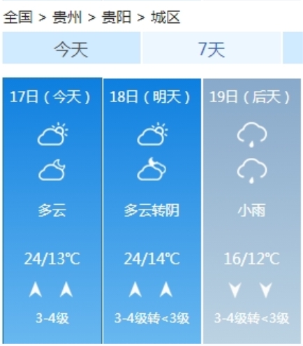 明天夜间到19日白天,全省自北向南先后多云转阴天有阵雨,大部气温下降4-10℃;