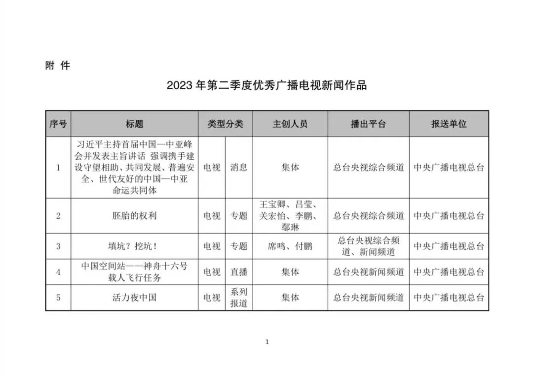 第二季度优秀广播电视新闻作品的通知